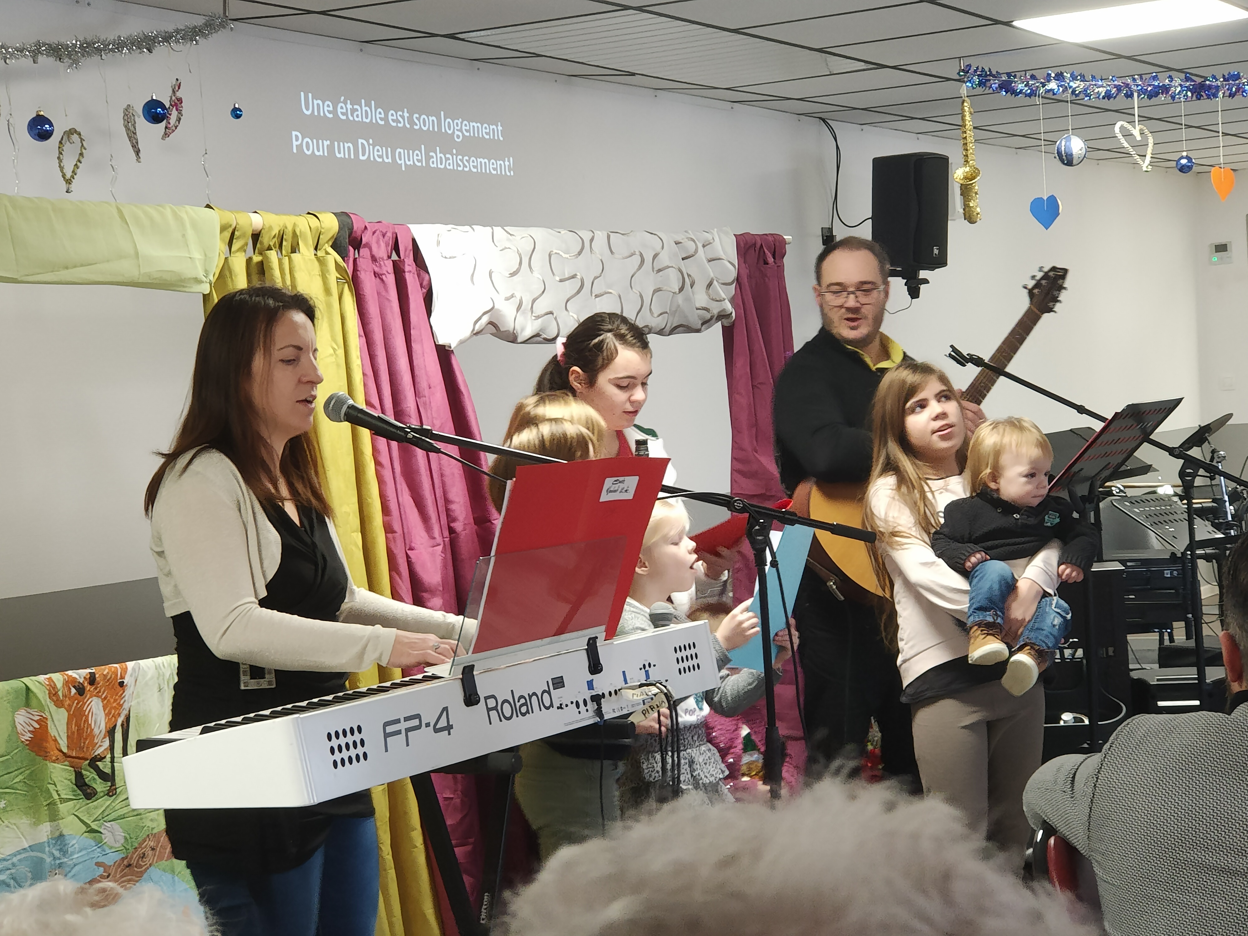 L'église a célébré son culte de Noël ce dimanche, à deux semaines du réveillon. Au programme : la louange conduite par le couple pastoral Thomas et Véronique Michel (parfois accompagnés par leur tribu), prières et spectacle de marionnettes. Un repas de Noël a prolongé cette matinée.
